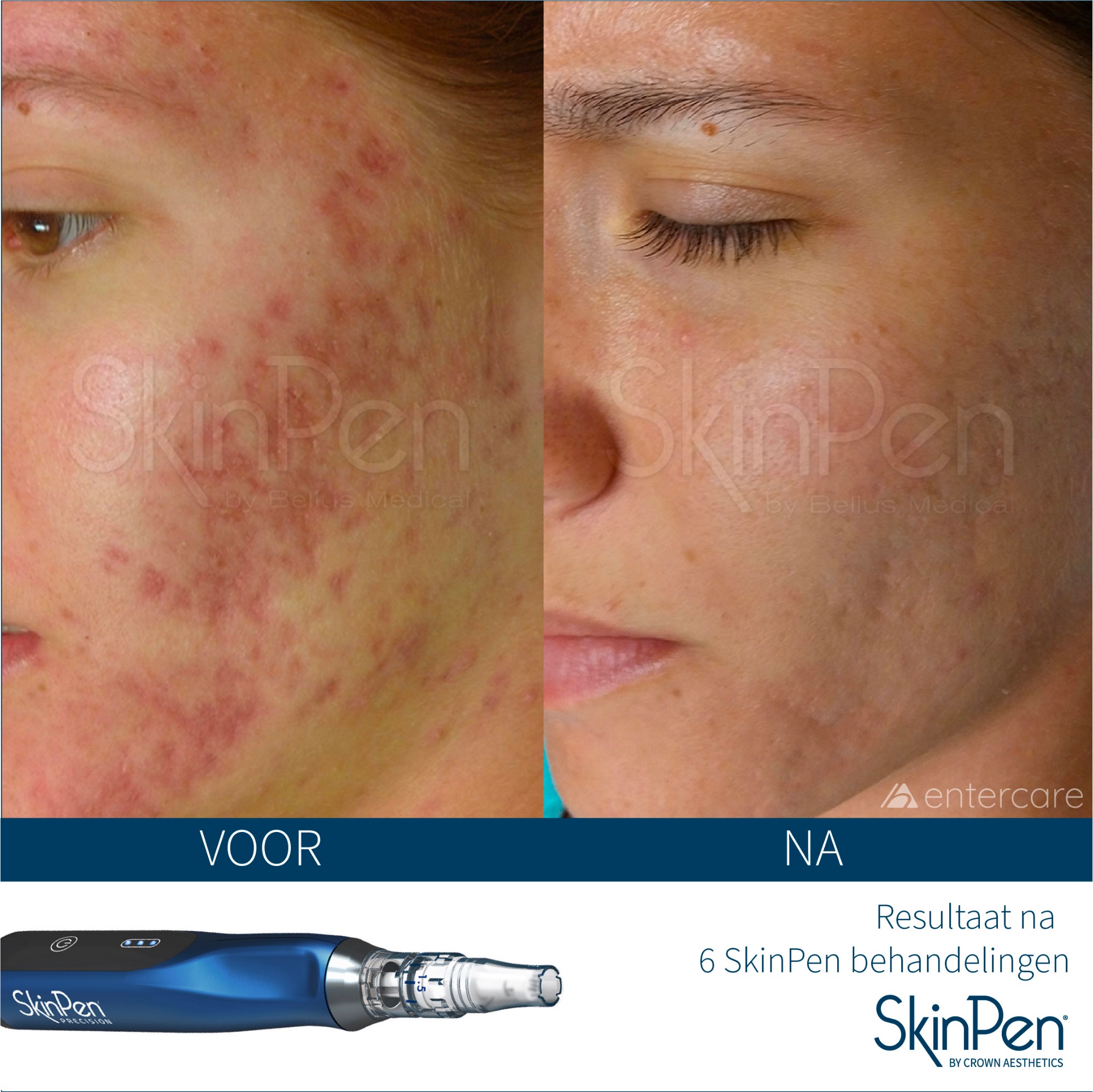 De SkinPen is het eerste FDA goedgekeurde medische micro-needling systeem ter wereld. Het is tevens als enige systeem FDA goedgekeurd voor het veilig en effectief behandelen van acné-littekens. Naast het behandelen van acné-littekens, is een behandeling met de SkinPen geschikt voor het verstevigen en egaliseren van de huid door het stimuleren van fibroblasten, die collageen en elastine aanmaken. Ook fijne lijntjes verminderen of verdwijnen en poriën verfijnen met behulp van de medische micro-needling behandelingen.De SkinPen is krachtiger, preciezer en veiliger dan ooit tevoren! De naalddiepte kan in tegenstelling tot veel andere micro-needling systemen op de naald zelf worden ingesteld en gaat hierdoor nooitdieper of oppervlakkiger in de huid dan ingesteld.